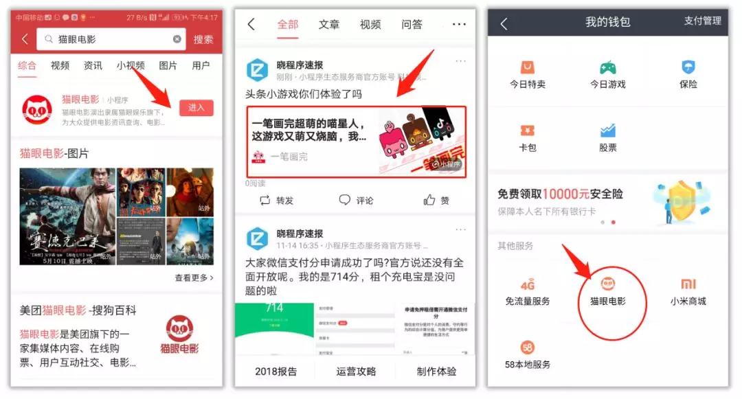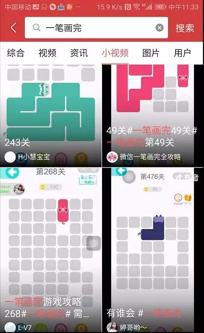 如果你是小游戲開發(fā)商,頭條小視頻搜索「一筆畫完」,你會(huì)拿到很好的視頻素材做參考;如果是工具類、服務(wù)類等小程序,要把小程序的實(shí)用性、可玩性展示出來。