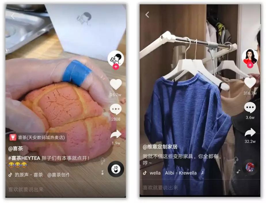 產(chǎn)品和服務(wù)的視頻推廣,推薦大家參考2個(gè)做得比較好的藍(lán)V抖音號(hào):「喜茶」和「維意定制家具」。