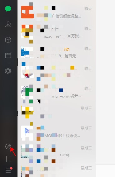2、然后登陸電腦版微信后在界面看到下圖左側(cè)面板上有個小程序按鈕的圖標(biāo),這就是入口,點它。