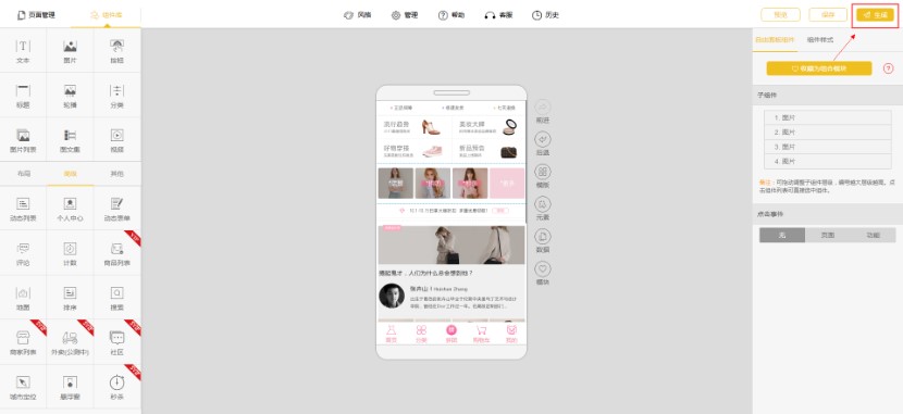 5、頁(yè)面編輯好后,并給每個(gè)頁(yè)面做好跳轉(zhuǎn),先預(yù)覽確保邏輯無(wú)誤,再點(diǎn)擊右上角的“保存”,然后點(diǎn)擊“生成”即可。