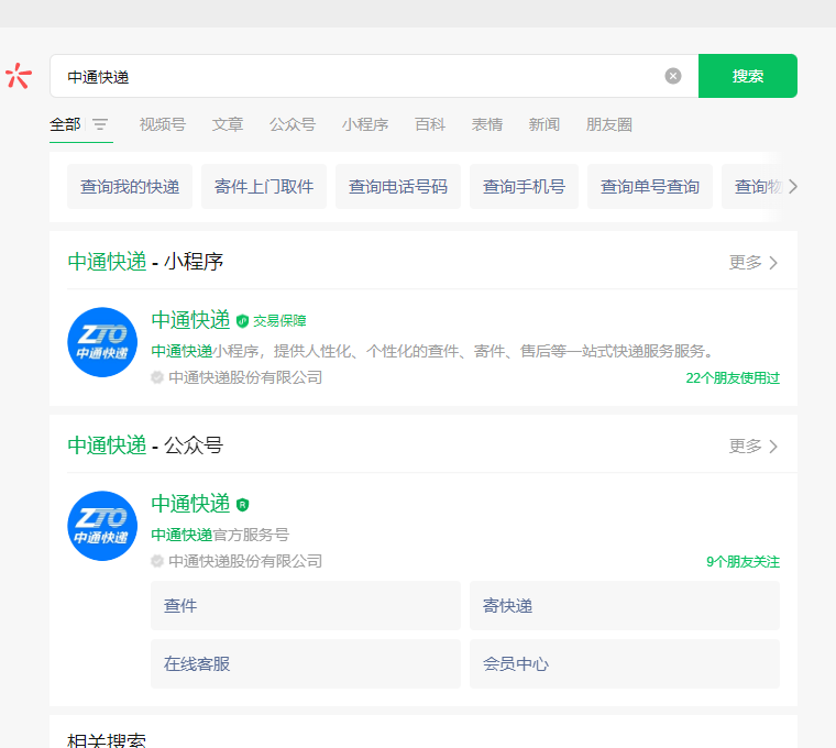 ]]>1、打開微信,點擊右上角搜索XX快遞,用戶可以自由選擇使用哪家快遞,只要搜索可以搜到,就可以點擊進入。(本文以中通快遞為例)