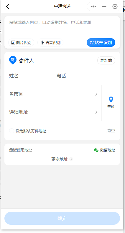 4、這時我們就可以看到頁面上面顯示出現(xiàn)寄件人的信息,我們按照寄件人自己的信息準確填寫之后點擊確定。