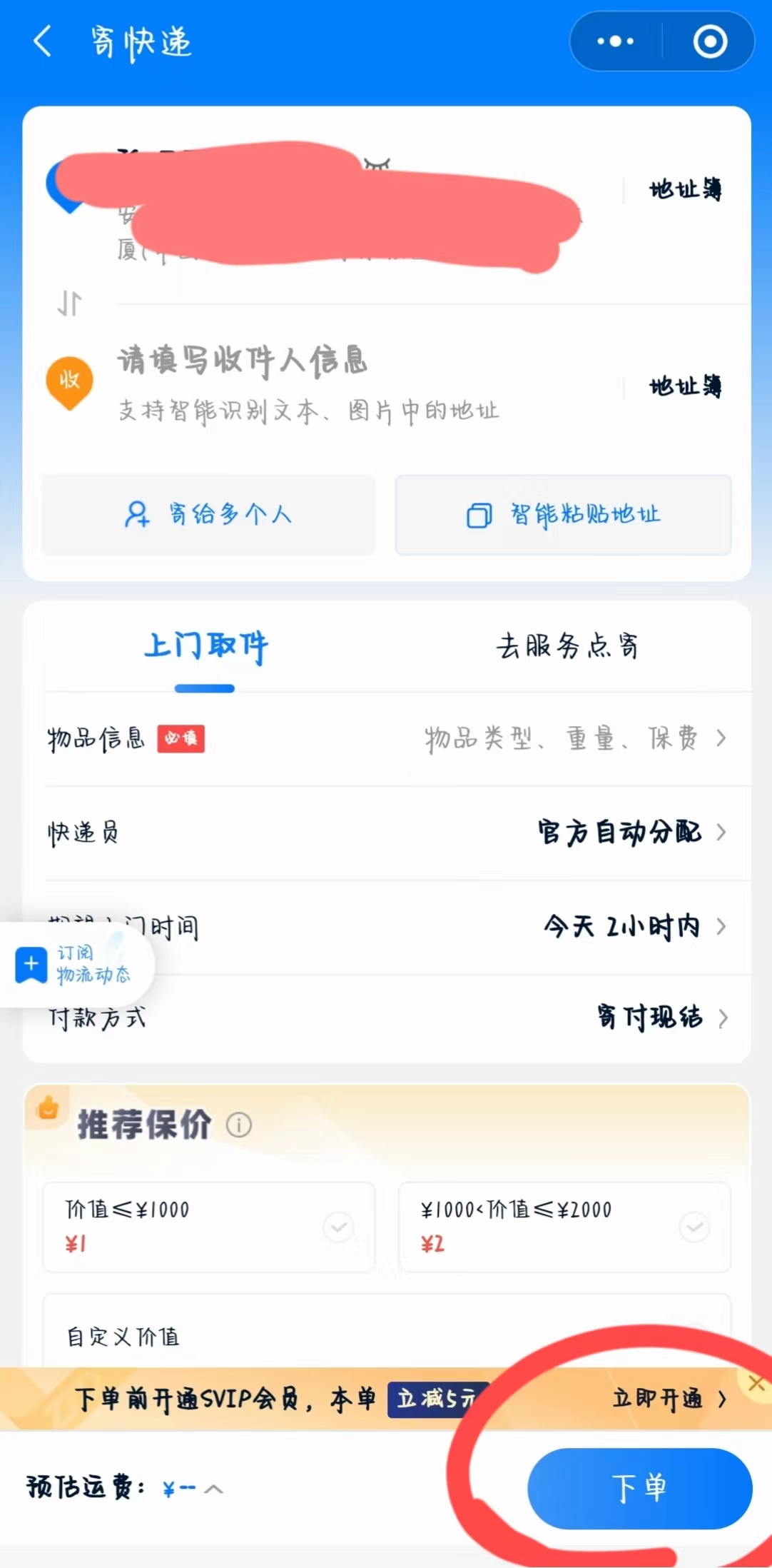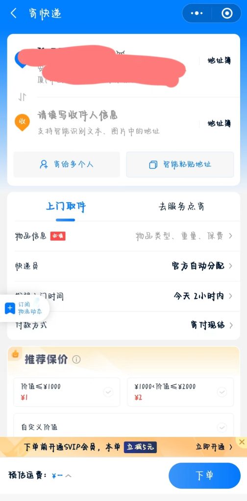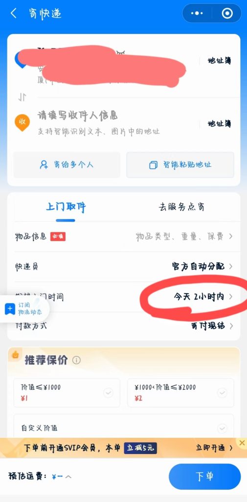 2、寄快遞一小時內(nèi)上門取件;