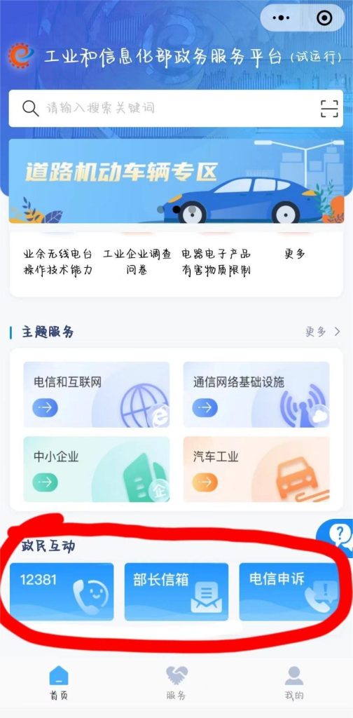 小程序還貼心設(shè)置了12381政務(wù)服務(wù)熱線、電信申訴等政民互動渠道方便用戶遇到困難時咨詢解決。